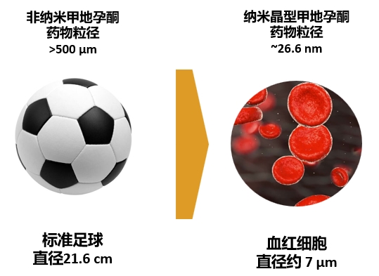 而此次纳入医保的新型第三代醋酸甲地孕酮口服混悬液,采用纳米晶技术将药物颗粒缩小2万倍(相当于从足球大小缩减至红细胞大小),大幅提升了药物吸收效率,进一步强化了治疗效果。